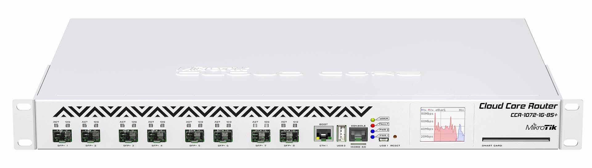 MikroTiK CCR1072-1G-8S+, Büyük ölçekli Ağ yönetm ihtiyaçları için özel tasarlanmış 72 Çekirdekli tilera işlemcisi, 16GB DDR3 1333 MHz Ram, birbirinden bağımsız kontrolcüler tarafından yönetilen 8 adet 10 G SFP+ portu ve 1 adet Gigabit ethernet portu ile saniye başına 100.000.000 paket taşıma imkanı sağlamaktadır. 64bit mimarisi baz alınarak yeniden tasarlanan RouterOS işletim sistemininde RAM bellek sınırlandırılması kaldırılmıştır, Geniş ölçekli ağ yönetimi için benzersiz bir şekilde tasarlanmış teknik donanımına hayat veren RouterOS işletim sistemi ile ağ yönetiminizi hiç olmadığı kadar esnek hale getirebilirsiniz.