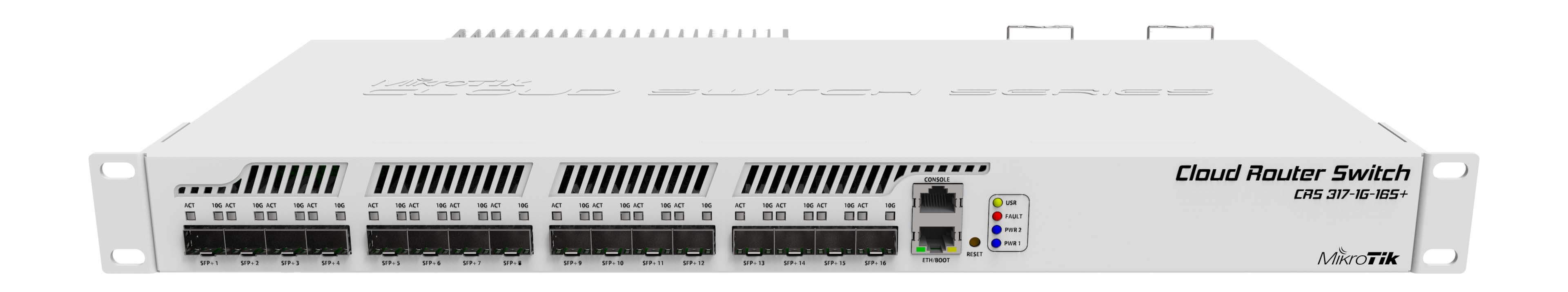 MikroTik CRS317-1G-16S+RM, 800Mhz işlemci, 1GB RAM, 16 Adet 10G SFP+ slotu, 1 adet Gigabit ethernet portu, Enerji beslemesini yedekleme imkanı sunan 2 adet güç kaynağı, pasif soğutma teknolojisi ile 500 aktif kullanıcısı bulunan orta ölçekli ağ yapıları ve ağ ana omurga sistemleri için hepsi bir arada çözüm sunmaktadır. Yeni işlemci mimarisi sayesinde donanımsal STP ve LCAP teknolojileri ile gelişmiş güvenlik ve LAYER 3 Switch özelliklerinin tamamını sunan ürün, standart RouterOS işletim sisteminin tüm özellikleri ile birlikte gelmektedir. Orta ölçekli ağların tüm ihtiyaçlarını karşılayacak benzersiz teknik donanımı ve RouterOS işletim sistemi ile ağ yönetiminizi hiç olmadığı kadar esnek hale getirebilirsiniz.
