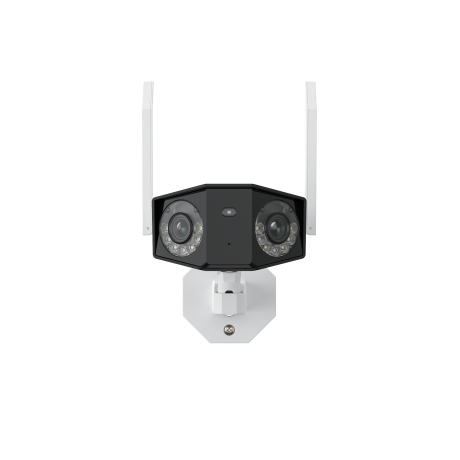 Gelişmiş bir dikiş algoritması ile güçlendirilen bu çift lensli kamera, minimum bozulma ve kör lekeler olmayan çok yönlü gözetim için 180 ° ultra geniş bir görünüm sunar. Geniş odaları, araba yollarını veya büyük açık alanları izlemek için mükemmeldir - hepsi tek bir kamera ile.
