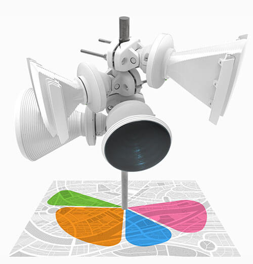Simetrik Horn Sektör antenler, gelişmiş RF izolasyonu sayesinde ortak nokta planlama altyapısına ölçeklendirilebilir bir uygulama imkânı sunarak altyapı planlama standartlarını yeniden tanımlamaktadır. Simetrik Horn Sektör antenler, benzersiz RF ışınımı ve ortak alan kullanım senaryolarında sağladığı izolasyon, eksiksiz kapsama alanı ile geleneksel sektör antenlere göre daha fazla verim sağlamaktadır. Ortak alan planlamasında sol üst resimde de görüleceği üzere sektör antenin baktığı cephenin ihtiyaçlarını karşılayacak asimetrik kapsama alanı oluşturmak için geniş çeşitlilik sunan Simetrikal Horn Antenler kurulan yayın noktası üzerinde daha az yer işgal etmektedir.