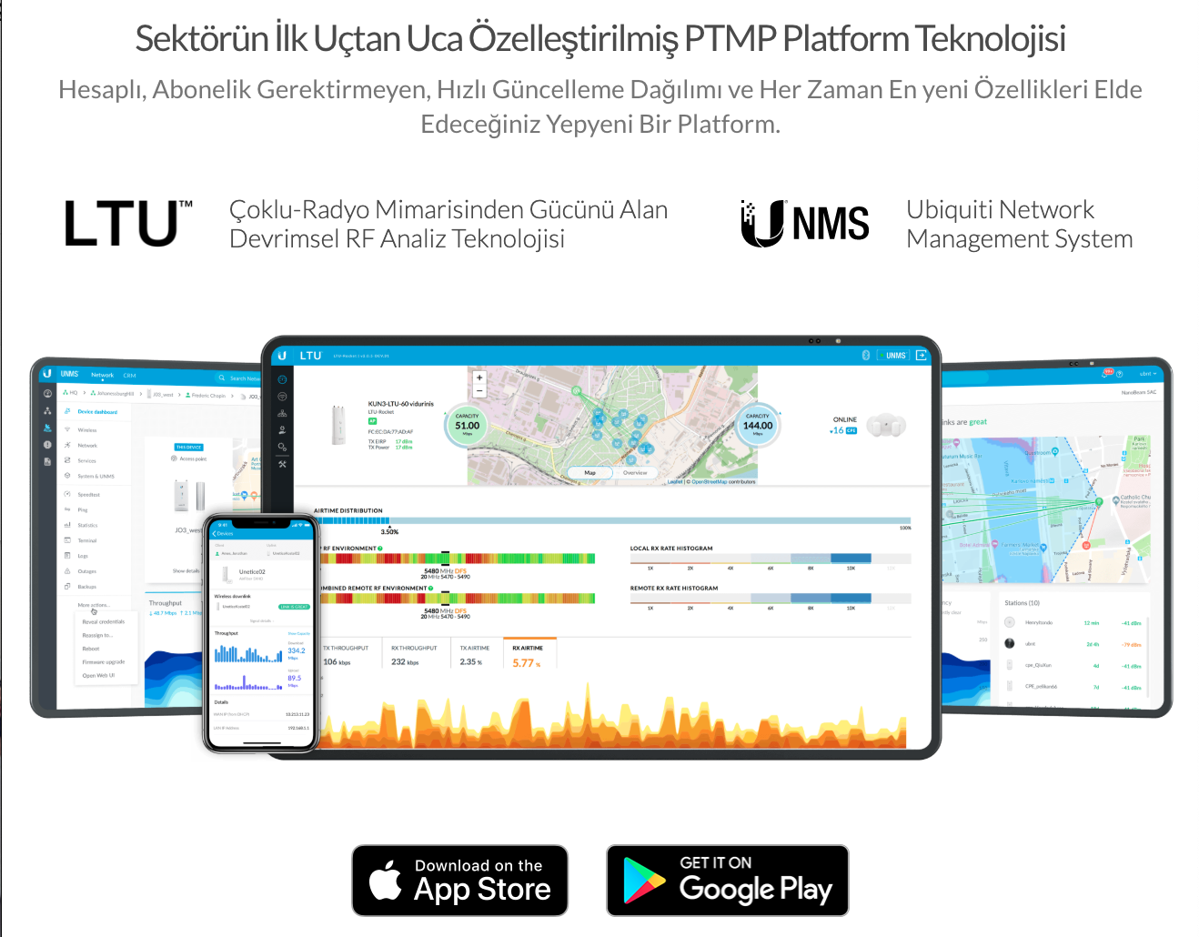 LTU ürün ailesinin ilk noktadan çoklu noktaya (PTMP) Erişim noktası (Acces Point) modeli olan UBNT LTU Rocket, özellikle Kablosuz ISP firmalarının ihtiyaçları hedeflenerek tasarlanmış Özel Invictus işlemicisi, Frekans kirliliğine ve kablosuz iletişim performansına odaklanarak tasarlanmış özel radyo kartı, 29dBm çıkış gücü, Noktadan çoklu noktaya bağlantıda 50 MHz kanal genişliği desteği*1, 1024QAM modülasyon kabiliyeti*2, ve Gigabit ethernet portu ile saniyede 2.000.000 paket taşıma imkanı ve toplam 600MBPS+*3 noktadan çoklu noktaya Kablosuz data aktarım hızını 64 eş zamanlı istemciye*4 sağlayarak, yüksek bant genişliği ihtiyacı bulunan ve kirliliğe karşı çözüm aranan Kablosuz ISP, MOBESE, Çoklu Nokta Ana taşıyıcı Bağlantı (MultiPoint Backhaul) altyapılarının noktadan çoklu noktaya kablosuz bağlantı ihtiyaçlarının karşılanmasında vazgeçilmez ürün alternatifleri arasında yer alıyor.