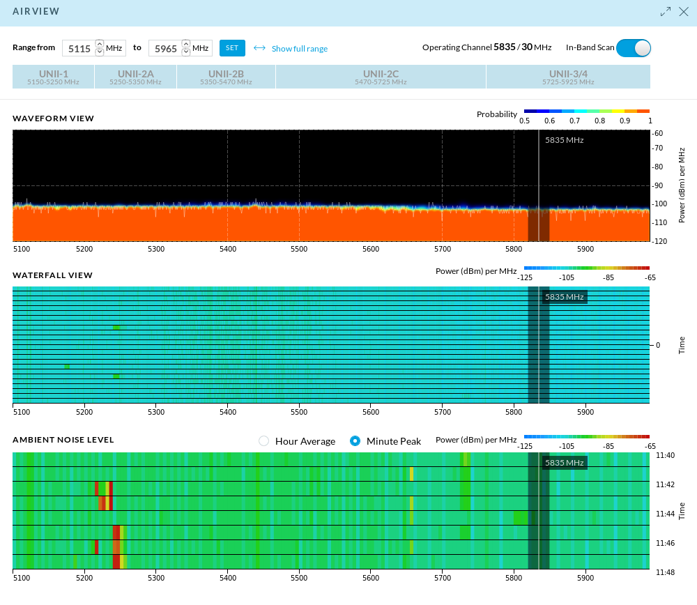 Spektrum analizi için ayrıca tahsis edilmiş bir radyo kart yardımıyla kablosuz bağlantınızın normal çalışmasını ve performansını etkilemeden arka planda çalışan airView teknolojisi; sürekli çevresel gürültü yoğunluğu izleme ve Enerji veri noktalarının gerçek zamanlı spektral görüntüsünü oluşturma özellikleri ile cihazlarınızın bulunduğu konum hakkındaki verileri; dalga biçimi, Şelale ve ortam gürültü grafikleri ile göresel hale getirerek cihazlarınızın çalıştığı bölge hakkında daha fazla bilgi sahibi olmanızı sağlayıp, link performansınızı arttırabilecek hareket planları geliştirmenize yardımcı olmaktadır.