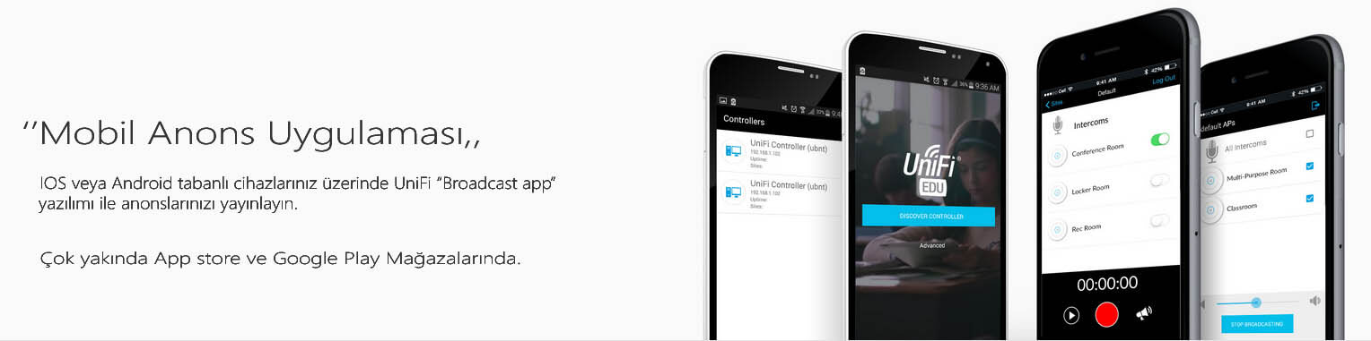 UniFi UAP AC EDU ile birlikte sunulan Anons Hoparlörünün kulurumunu ilave data veya Güç kablolaması yapmadan gerçekleştirebilir, cihazınıza çekilen PoE kablosu üzerinden cihazınızın ve kablosuz Erişim noktalarınızın yönetimini ve güç ihtiyacını karşılayabilirsiniz. Yapılacak anonsunuzu Android veya IOS platformuna sahip akıllı telefonunuz üzerinden yapabilir, dilerseniz tek bir UBNT UniFi UAP AC-EDU veya birden fazla kablosuz erişim noktanız üzerinden anons işlemini gerçekleştirebilirsiniz.