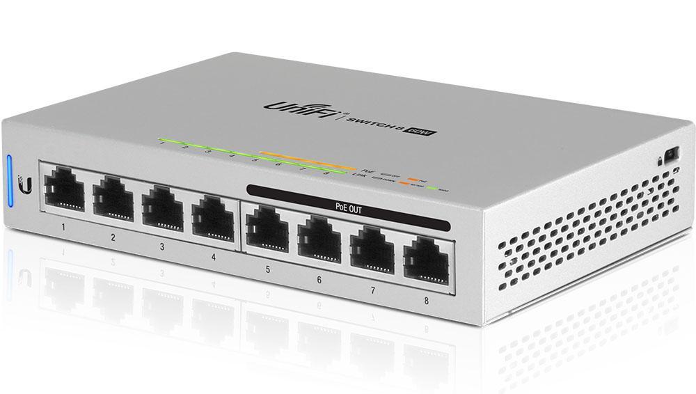 UBNT UniFi Switch ailesinin ufak çaplı kurumsal ağ ihtiyaçlarını karşılamak için tasarlanmış UBNT UniFi Switch US-8-60W modeli, 8 adet Gigabit ethernet portu, Layer -2 ve Layer -3 standartlarını destekleyen gerçek yönetilebilir switch özelliklerinin yanısıra, son 4 portu üzerinden 802.3af teknolojisini otomatik algılama desteği ile sunmaktadır.